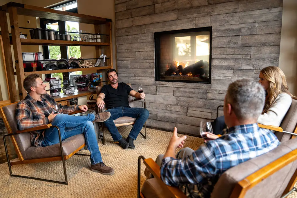 Set among rolling hills and estate vines in the Yakima Valley, Whitman Hill Winery is a place to slow down, take in the view, and enjoy estate-grown wines where they are made. The tasting room opens onto expansive lawns, a calming water feature, and vineyard vistas in every direction. On warm days, guests may relax on the patio or settle into seating areas nestled throughout the landscaping. In cooler months, the double-sided fireplace, fire tables, patio heaters, and cozy blankets keep things comfortable inside and out.